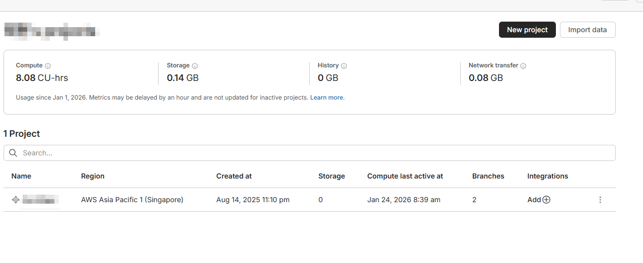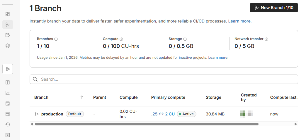 특히 'Scale-to-Zero(자동 절전)', '브랜치(Branch)' 기능은 사이드 프로젝트를 운영하는 개발자한테는 매우 좋고 관리도 편한 기능입니다.
