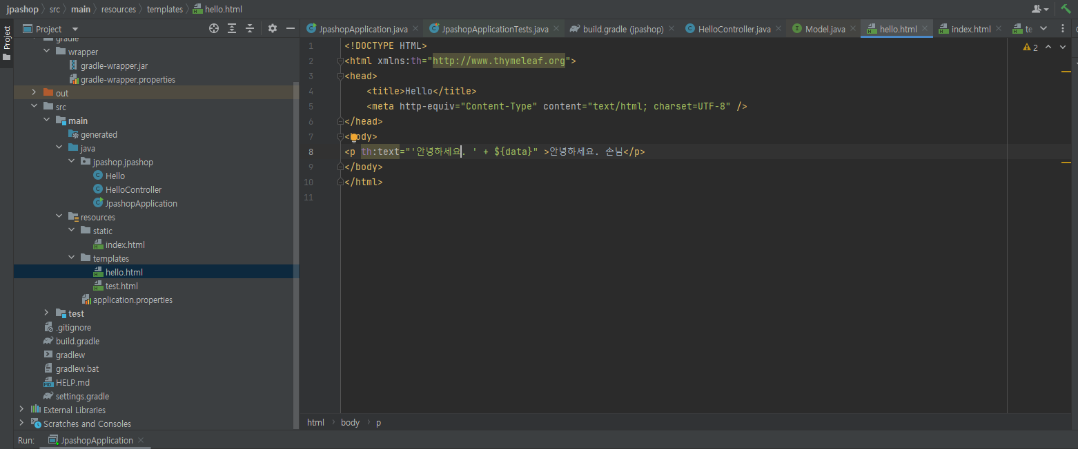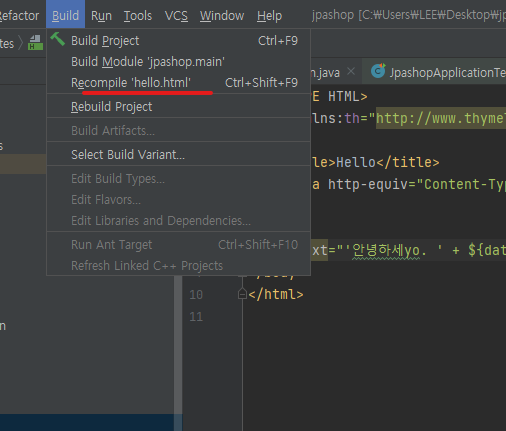 4. text를 안녕하세요 -> 안녕하세yo로 변경하면 기존의 소스에서는 이미 실행시킨 서버를 죽이고 다시 빌드를 해야 하지만 devtools를 사용하면 그 과정 없이 수정된 파일 만 컴파일하면 문제 없이 변경되는 부분이 적용됩니다.