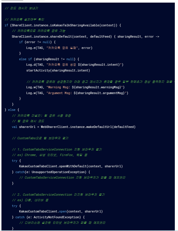 예를 들어보자면 api를 활용해서 아래와 같이 카카오톡의 공유기능을 활용 할수 있습니다.