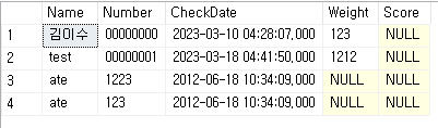 위의 두쿼리를 사용하여 입력하였을 경우 아래처럼 데이터가 들어가게 됩니다.