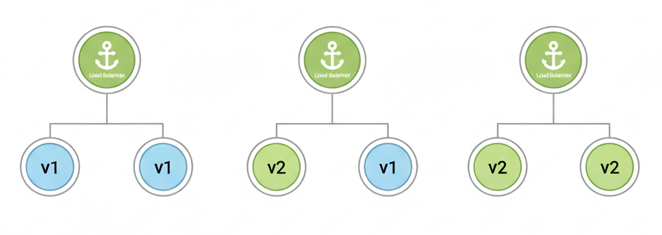 - 로드 밸런서(Load Balancer) 혹은 프록시 서버 등: 사용자 트래픽을 여러 서버 인스턴스에 분산시켜주는 장치. 배포 중에도 트래픽을 구 버전과 신 버전 인스턴스 간에 유연하게 전환하는 핵심 역할을 수행합니다.